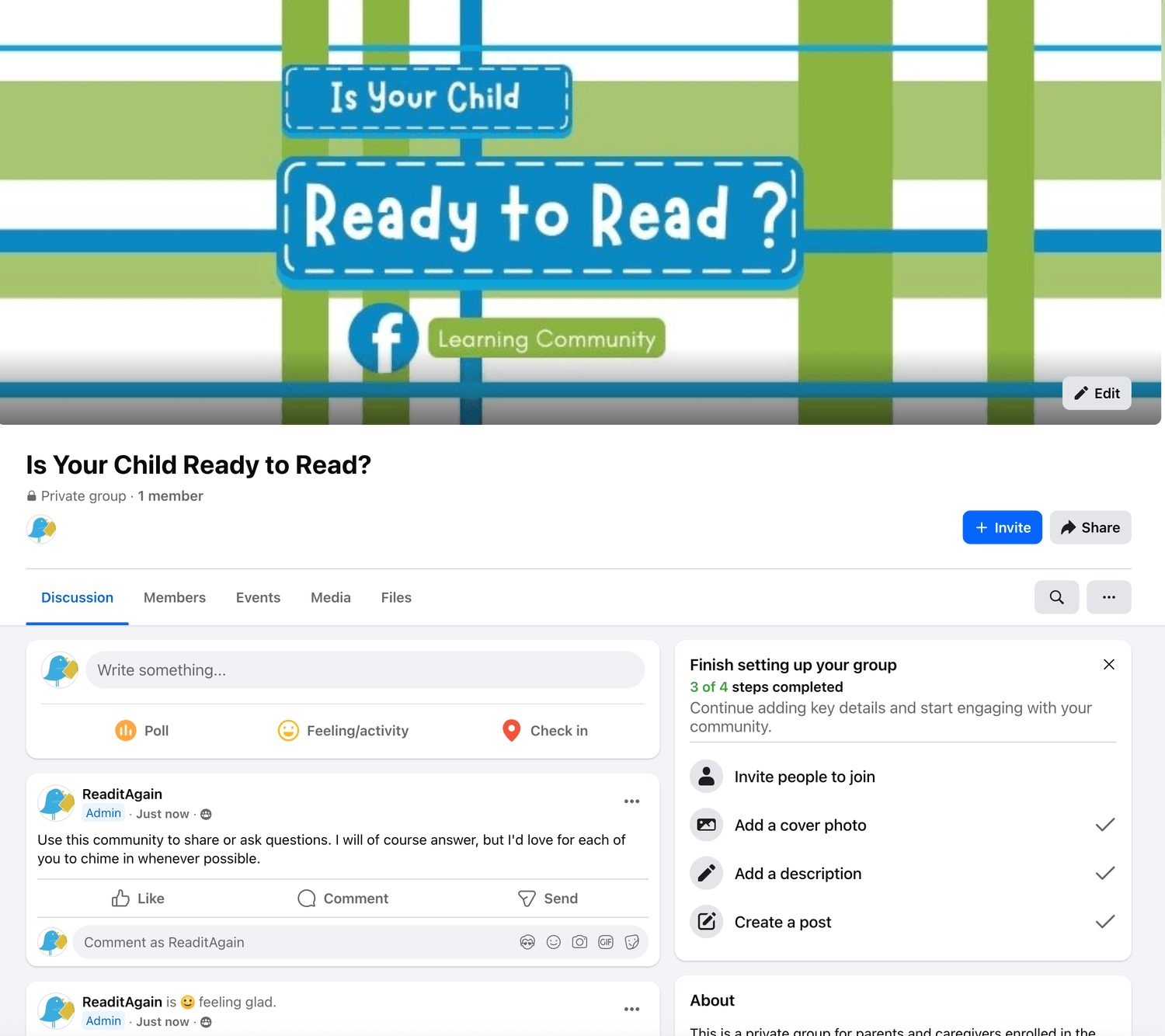 Join our "Is Your Child Ready to Read?" Facebook community to chat with me and other parents and caregivers experiencing the same worries surrounding early literacy.